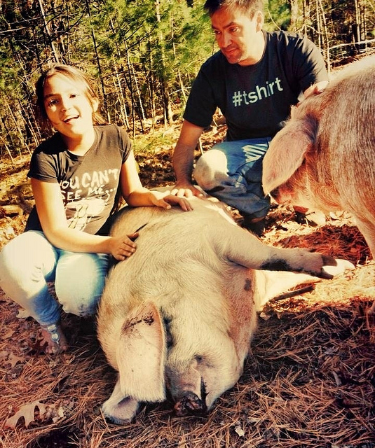 I like the pigs. We made sure they had a good, low-stress life wand were healthy and well taken care of. But let's remember: we're only a generation or two from a time when nearly everybody had some meat in their backyard. Pigs are easy going and personable. They'd sprawl out at my feet and let me scratch their belly ('Who's got the good little bacon? You've got the good little bacon!') But that didn't change what they were there for. We just enjoyed them while they were around.