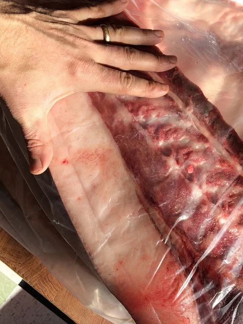 Driving down the highway with a bunch of pink, meaty carcasses wrapped in plastic in the bed of my truck is always a bit of a treat. I always worry a little about what passing motorists might thing. On the other hand, they tend not to cut me off. So there's that.