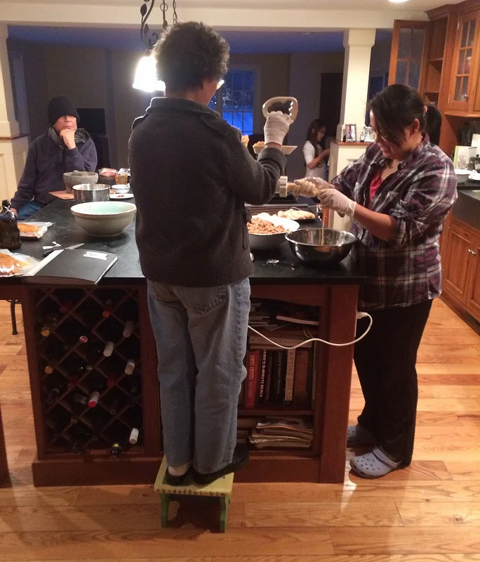My Bride's people are not tall, and needed proper sausage stuffing leverage. Fortunately, we were prepared.