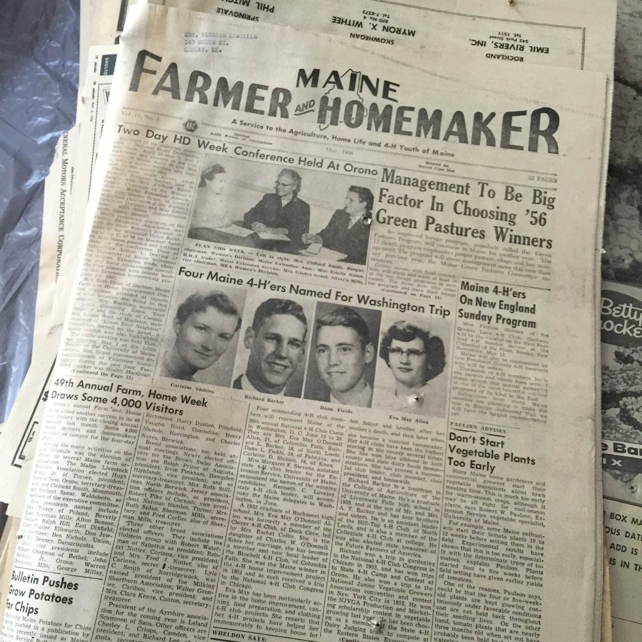 In Maine, spring is generally a long time coming. At least for this guy raised in Georgia. When we were renovating the house, we found several places where newspaper had been used as insulation between the walls or under floors. This 70 year old newspaper printed in May of 1956 warns against planting yet... "This is much too early for warm season plants..."