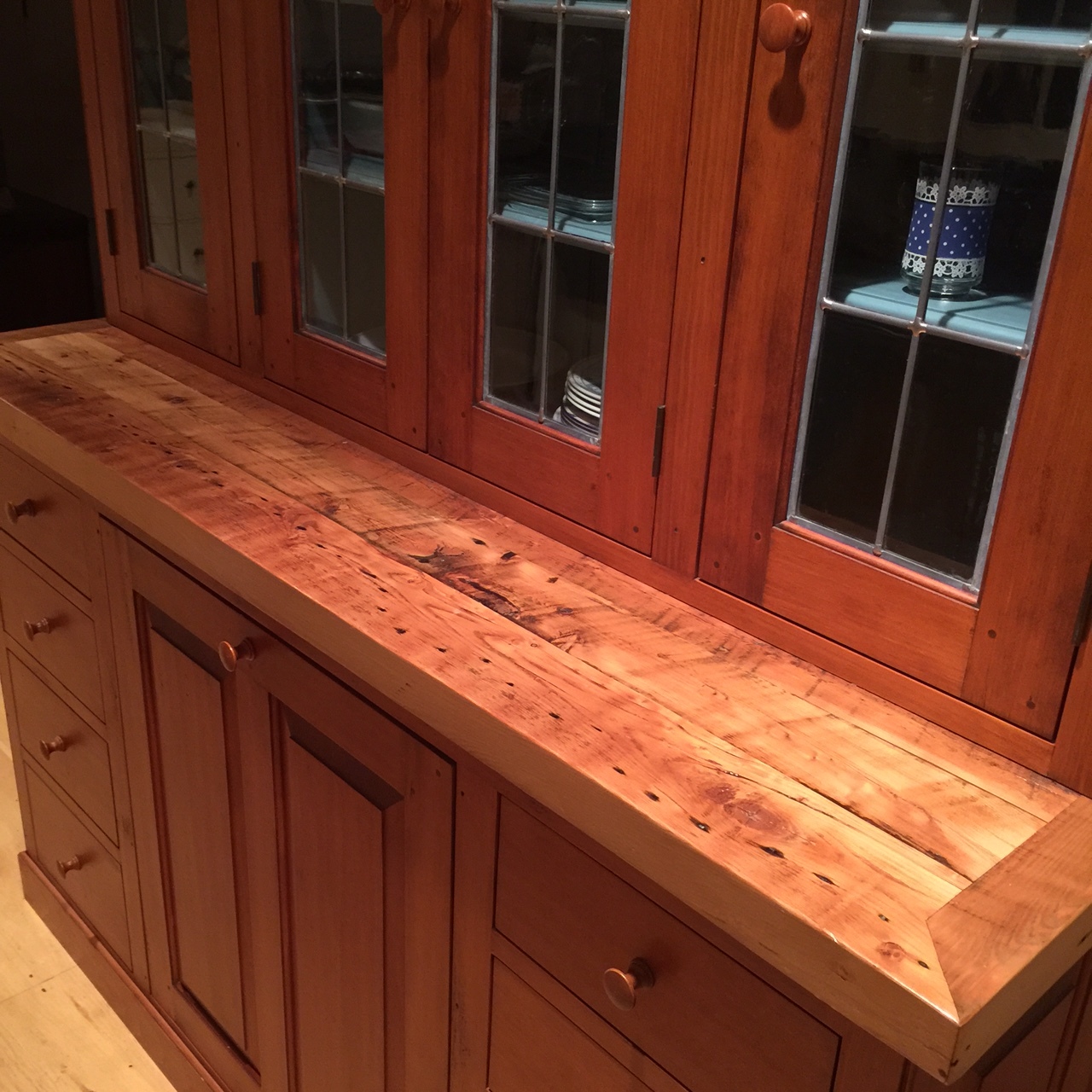 The hutch is a new, built in. The wood on the counter offsets the soapstone island, and looks brilliant.