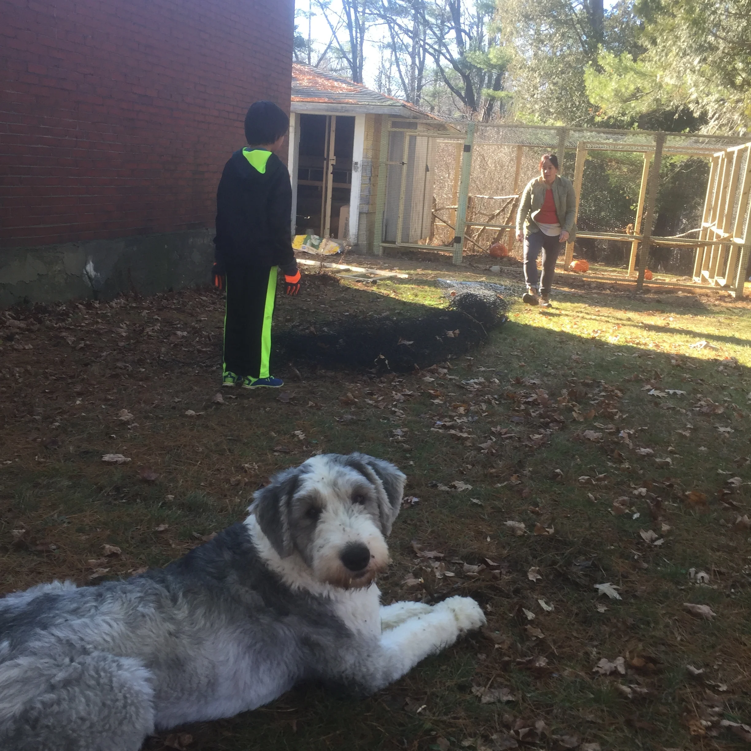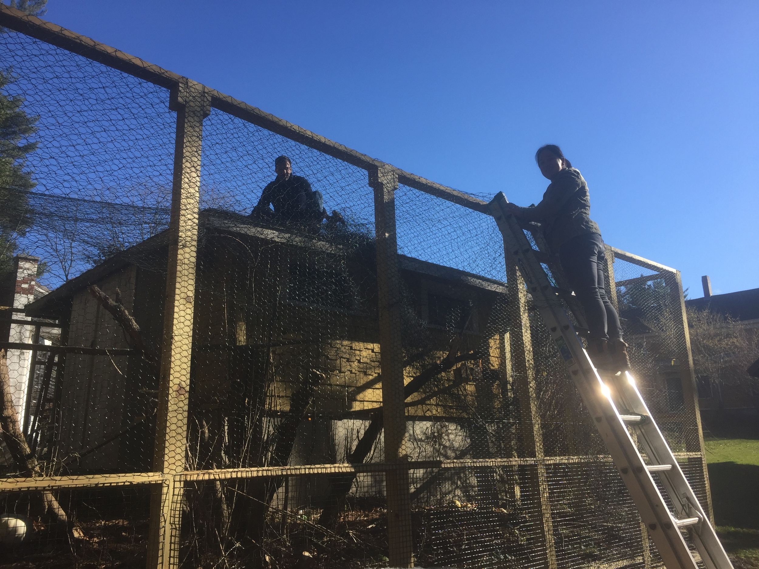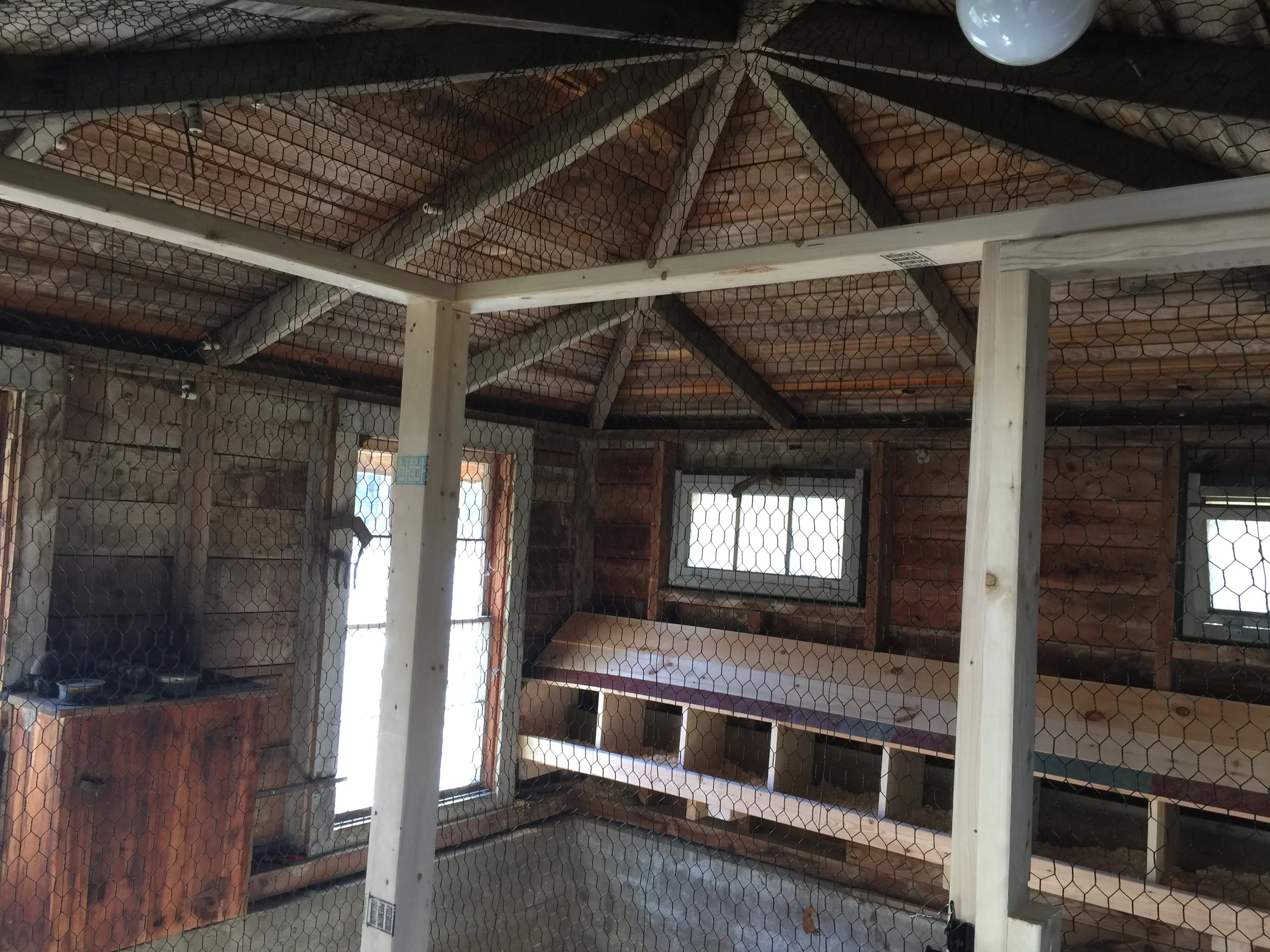 We had plenty of knotted netting material left to cover the run - most of the chickens I've lost over the years have been to hawks. Like 2:1 for any other cause. Keeping the chickens in the run (and the predators OUT - there was one horribly bloody afternoon when a young red tailed hawk actually followed the chickens into the old coop through the little chicken door and commenced to slaughtering. It was a very messy day) is about the best thing I can do to help.