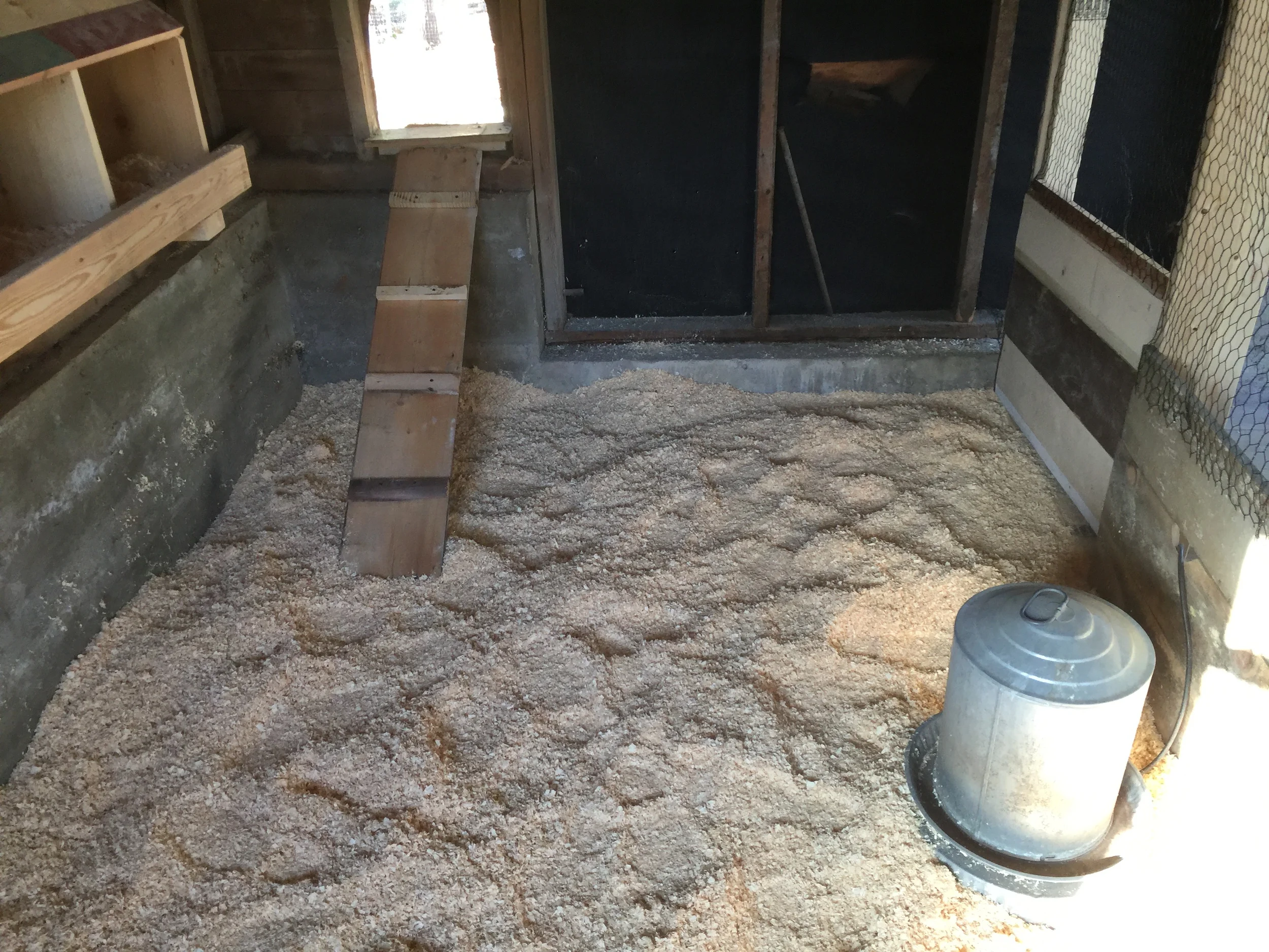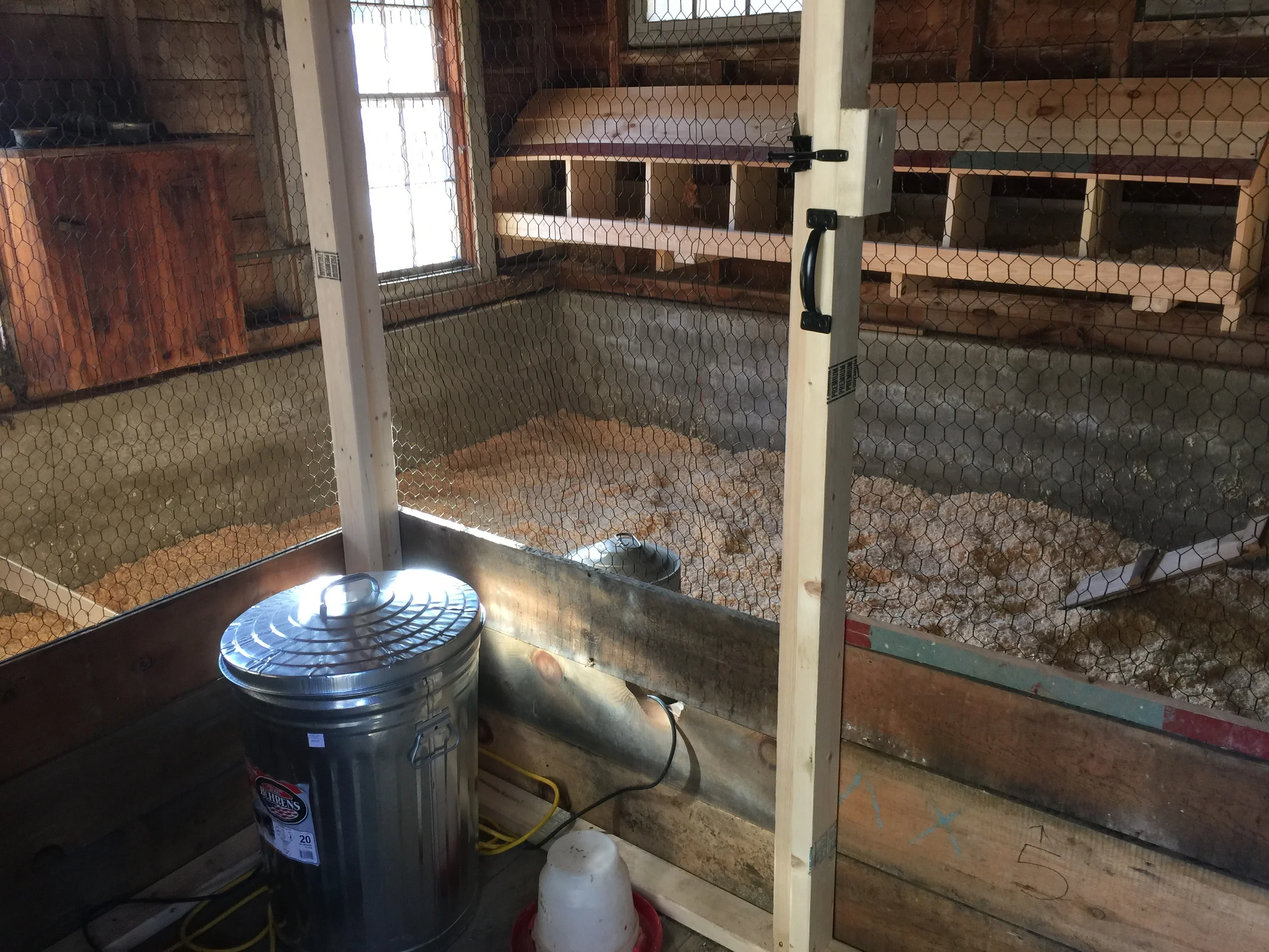 I gave myself plenty of room for food and other tool storage inside the coop. And I lined the bottom of the interior partition with a knee wall to keep the shavings from spilling out quite so badly.