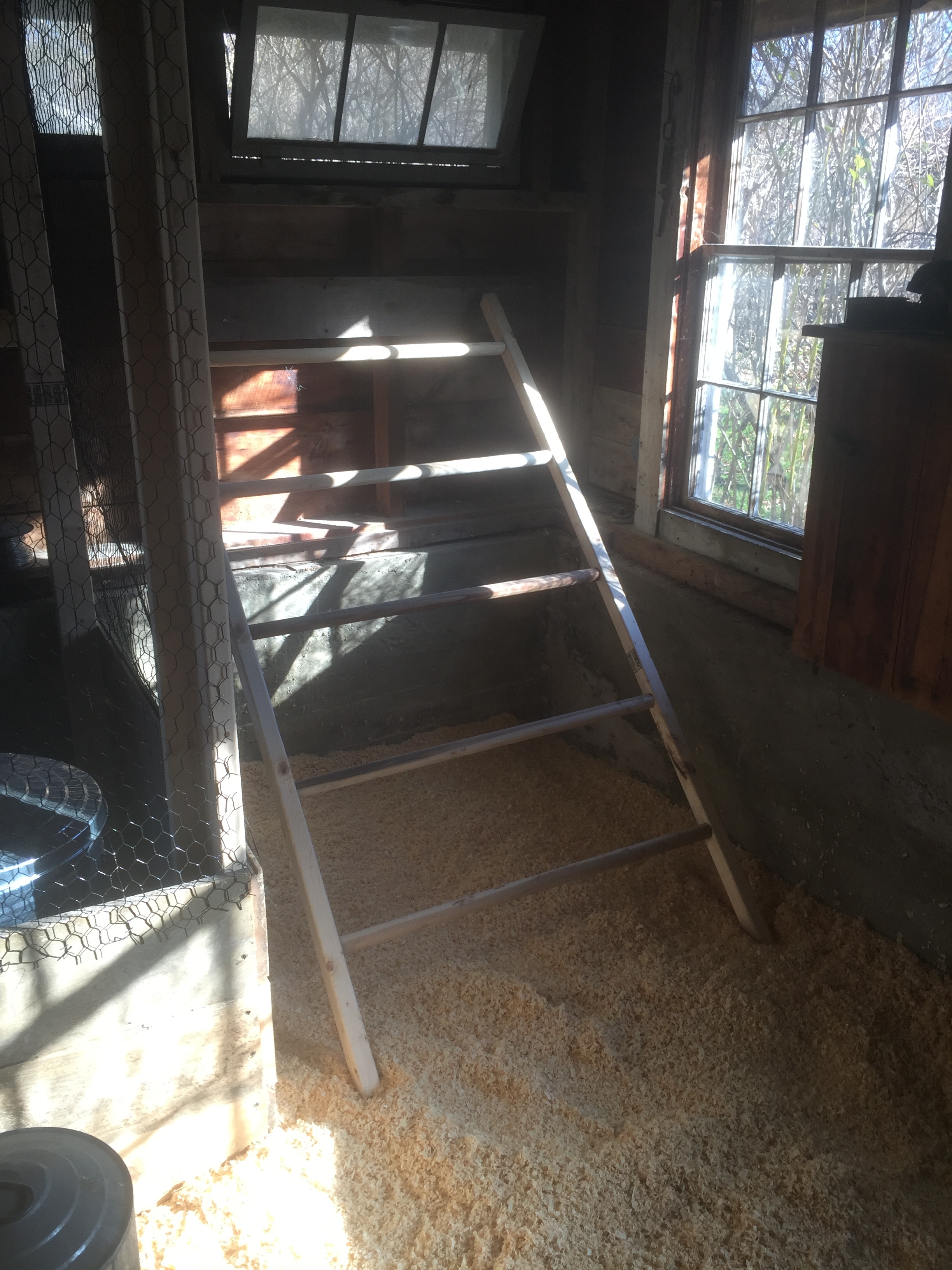 The last major mistake-inspired-innovation was a simple way to lift and shift the roosting bars when it came time to clean. I had made the error of permanently attaching the roosting ladder to the wall in the last coop (with a simple pair of screws. But then I had to go get my drill every time it came time to clean to remove it).