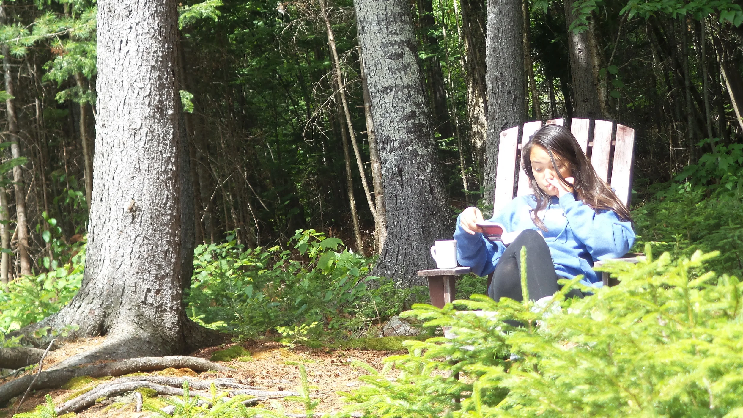 The kids both took to the woods readily. The Critter was just back from 4 weeks of sleep-away camp in New Hampshire (and not exactly thrilled at the idea of another week without access to her phone and friends), but admitted that the quiet was welcome after living in a cabin full of chattering 14 year old girls for a month.