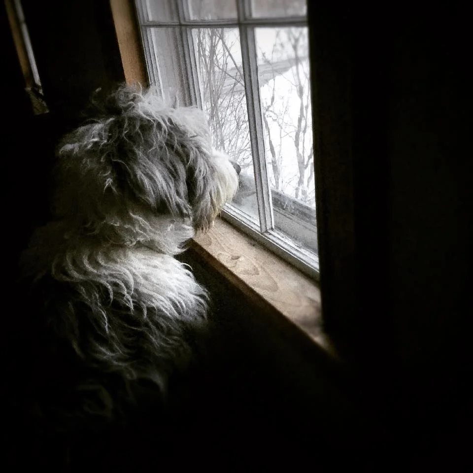 A couple of days or so after the piglets showed up, it snowed. (Because: Maine). George is still trying to figure out what kind of dogs these things are.