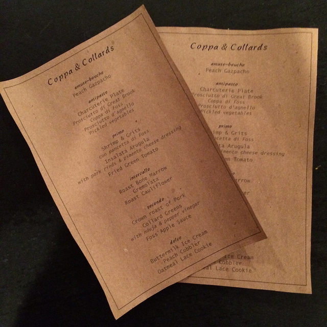 Some of us have fewer things to offer, but we're always up for a good meal. And so when asked, we suggested a couple of different menus that might be fun for a dinner party. We suggested a Filipino meal might be fun - a la the tasting menu we had done last fall for some friends. Or, since we do love the charcuterie, I sketched out a literal 'farm-to-table-and-the-farm-is-about-200-feet-from-this-table' menu, drawing on both the meaty-experiments we had going in the cellar, and my Southern roots.