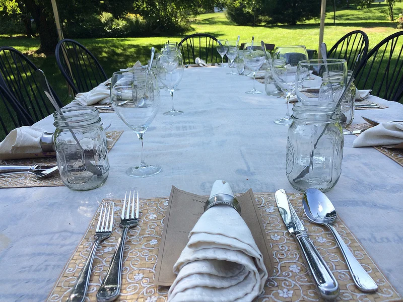 We had specified in the description that the meal would be arranged at mutual convenience, sometime in the late summer. We'd host the meal at our home, and we wanted to take advantage of the harvest & the weather, and the abundant bounty coming out of the garden in August.