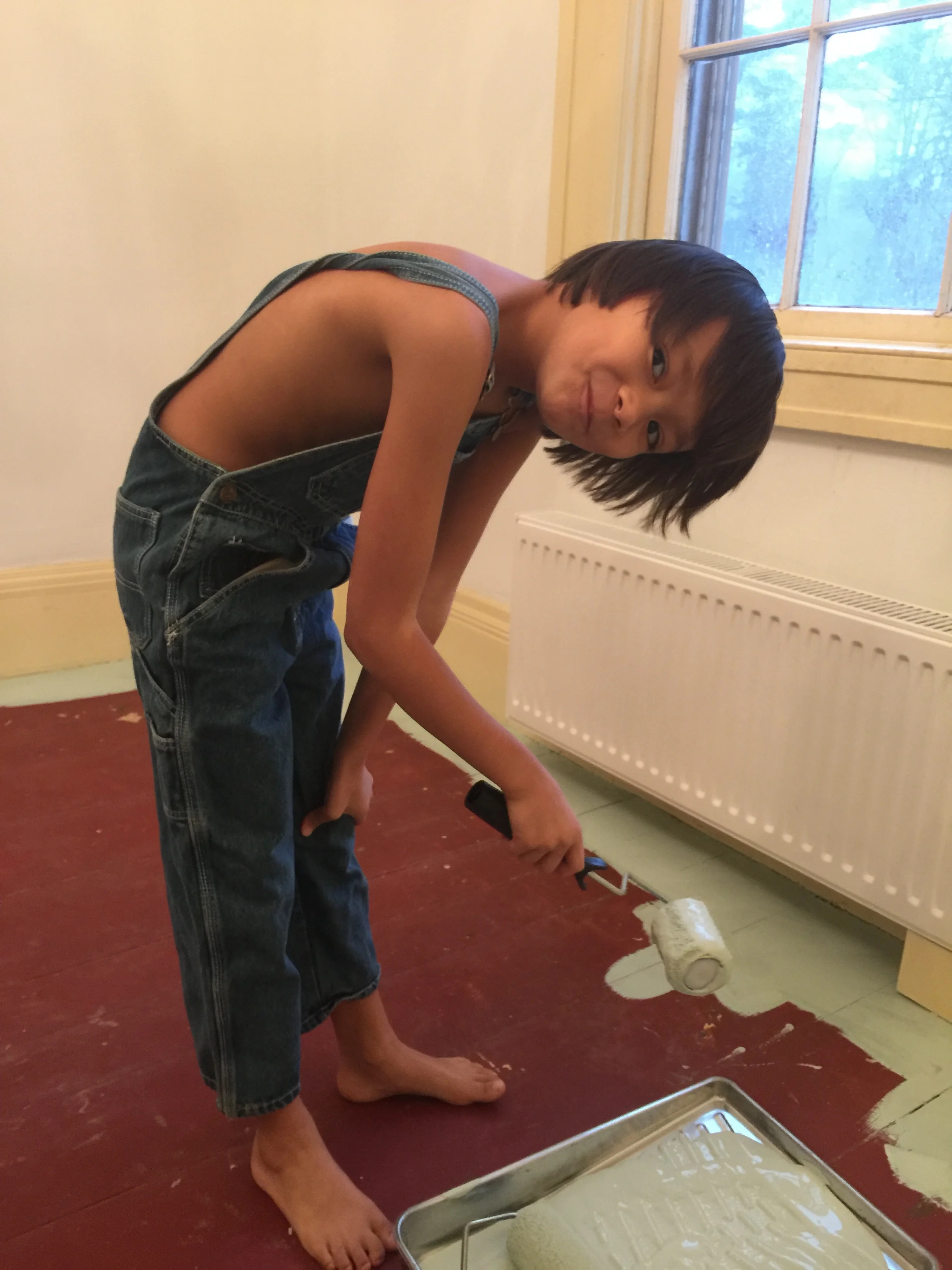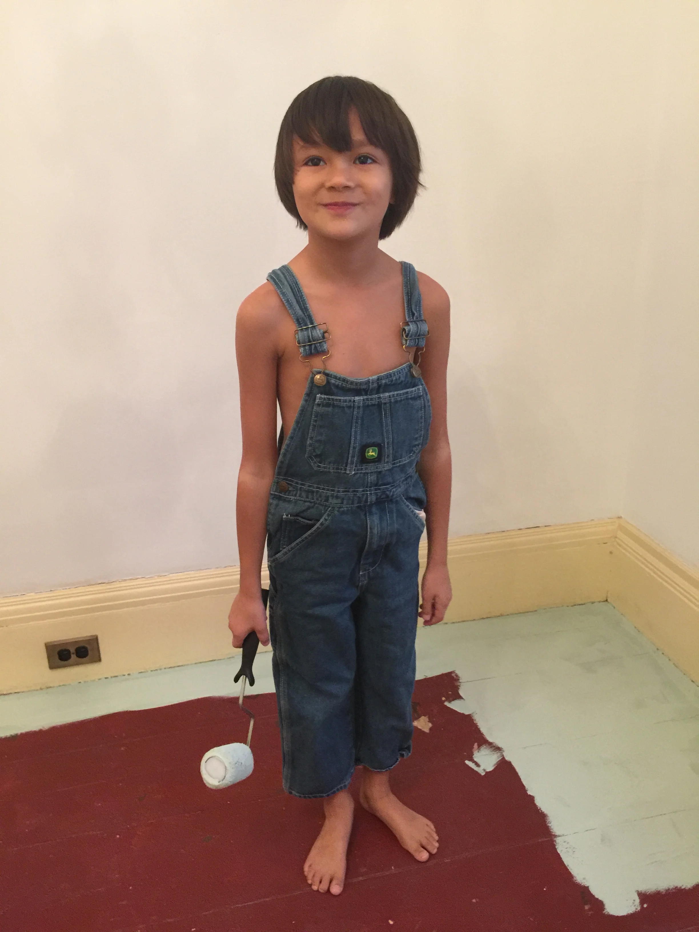 He sprinted off and came back wearing what he declared to be his "paintin' clothes!"