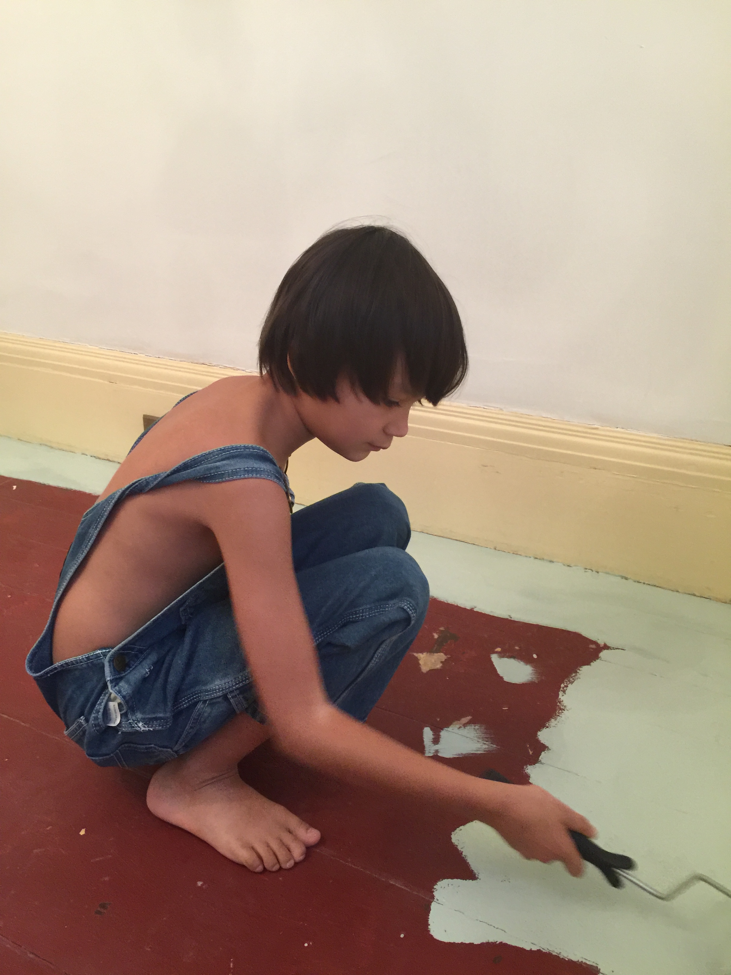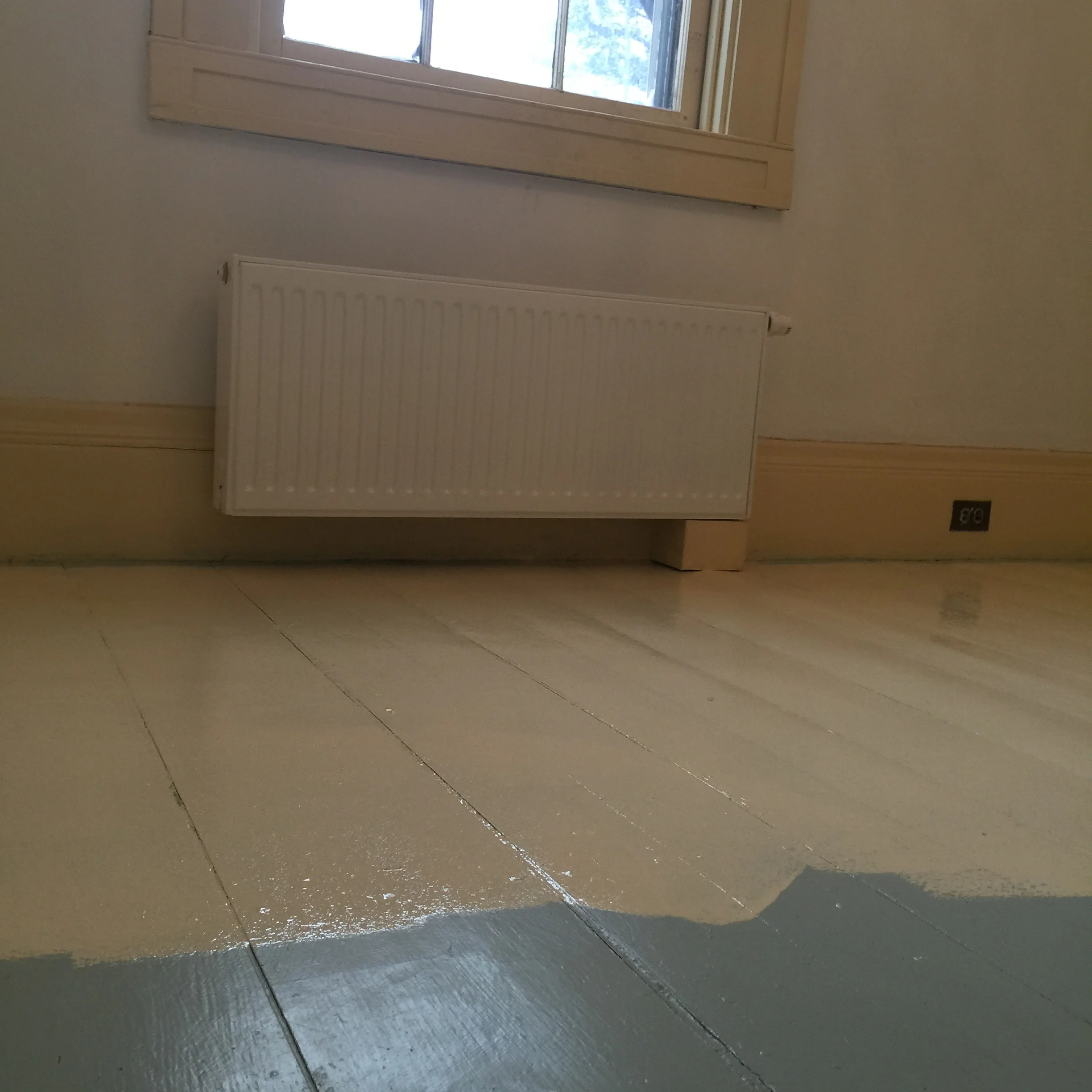 I did find myself wondering while I was painting, how many layers of paint am I going over on these floors? The room I was working on was, we think, part of the early 19th century renovations. And the floor would have been original to it. 3 coats? 5? No idea. Some of the other floors had at least that many. And I've just added another 2.