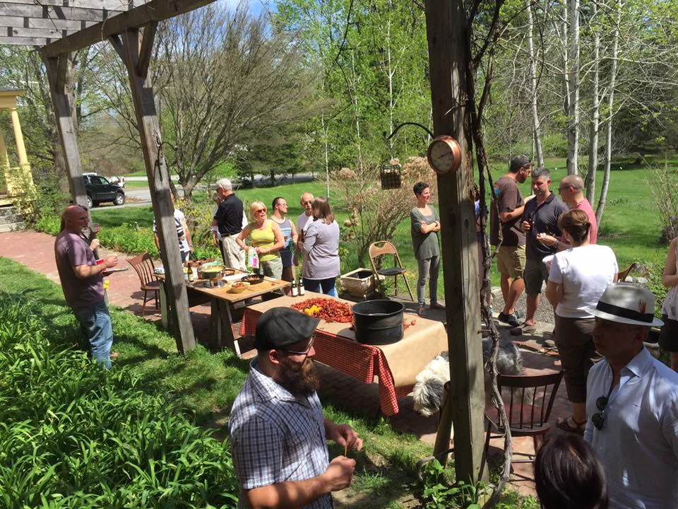 The kids ran around until they were exhausted. The adventurous ones trying the crawfish. Our gardens are just really coming back to life, and we kept the iced tea and lemonade and ready to refresh the kids for another round of whatever game they were playing.