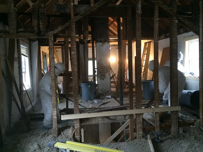 When we got up to the next level and pulled the interior walls down, we found evidence of the fire that had turned up in our pre-buying inspection report. Lots of evidence. Lots and lots of evidence.