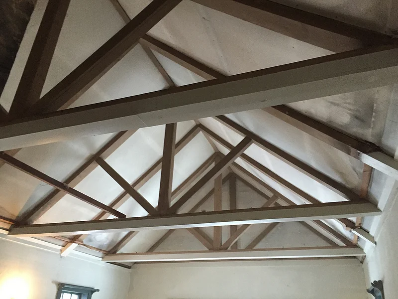 They haven't all been unpleasant surprises (thankfully). We pulled down the tired drop ceiling in the back of the barn extension (one of the rental areas), uncertain what to expect.
