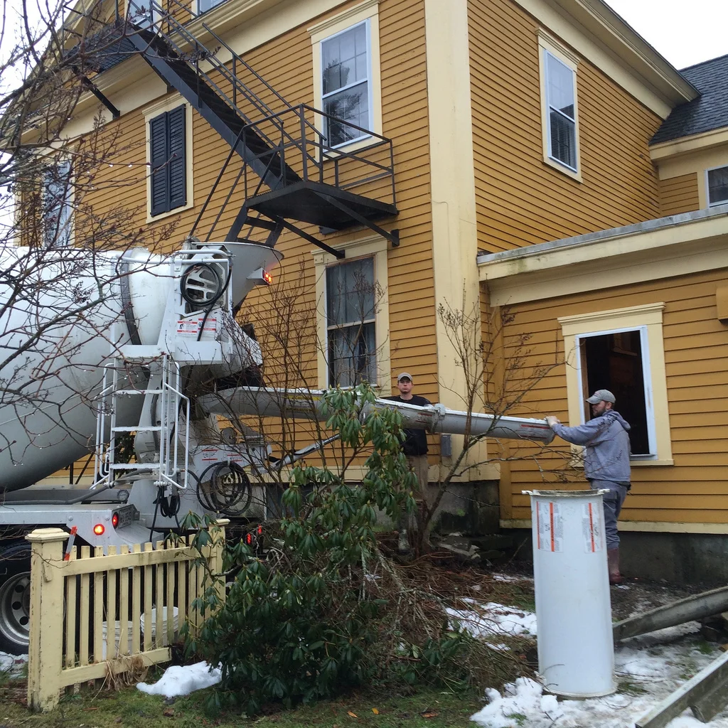 We only managed one real construction task pre-Christmas. We backed a concrete truck up to the house and filled in the hot tub pit.