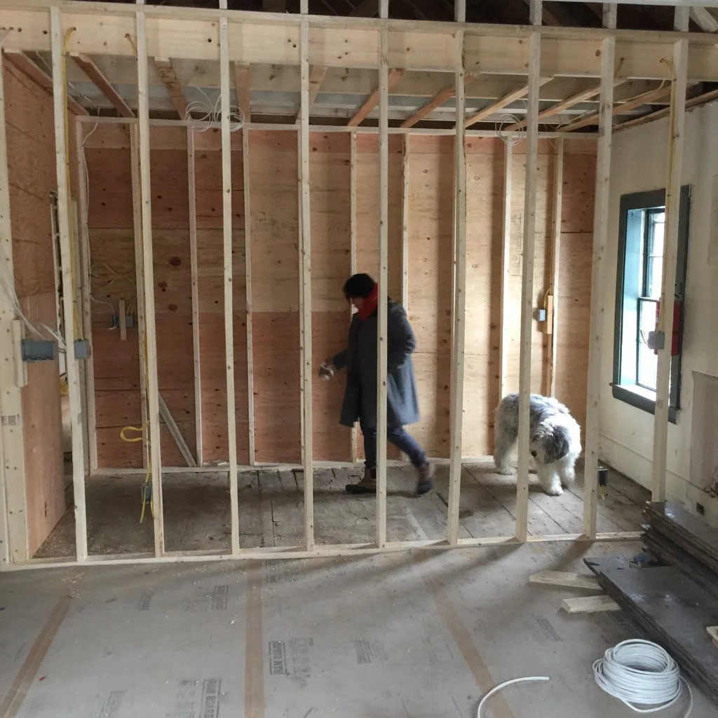 I realize it's been about six weeks since I posted photos of our new, er, old farmhouse in Maine. We knew that we would be stripping back the layers of additions, extensions, ad-hoc changes, and eras of personal choices and oddities that didn't quite fit our vision or the context of the house that were the end result of decades of use as a fraternity & then boarding house for the nearby university.
