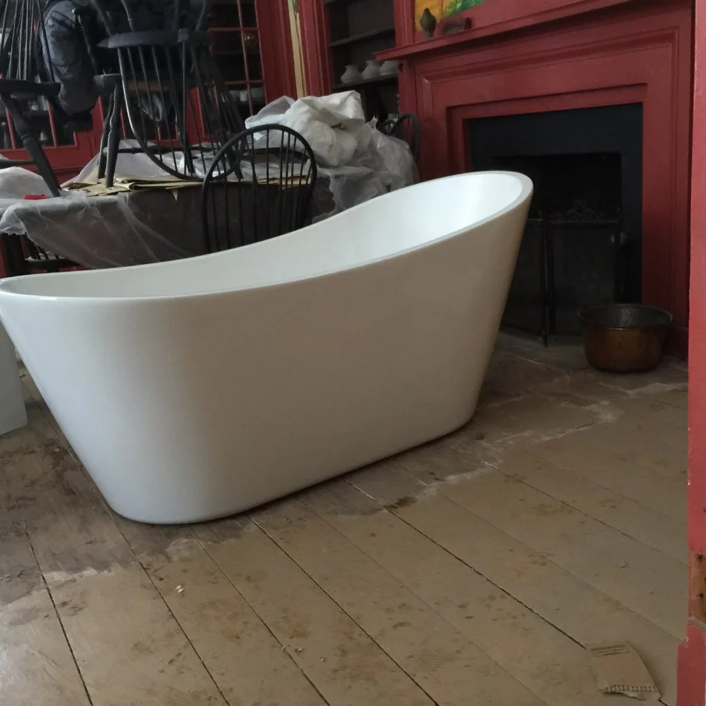 This is our bath tub. It's in the library. But eventually it will move upstairs.